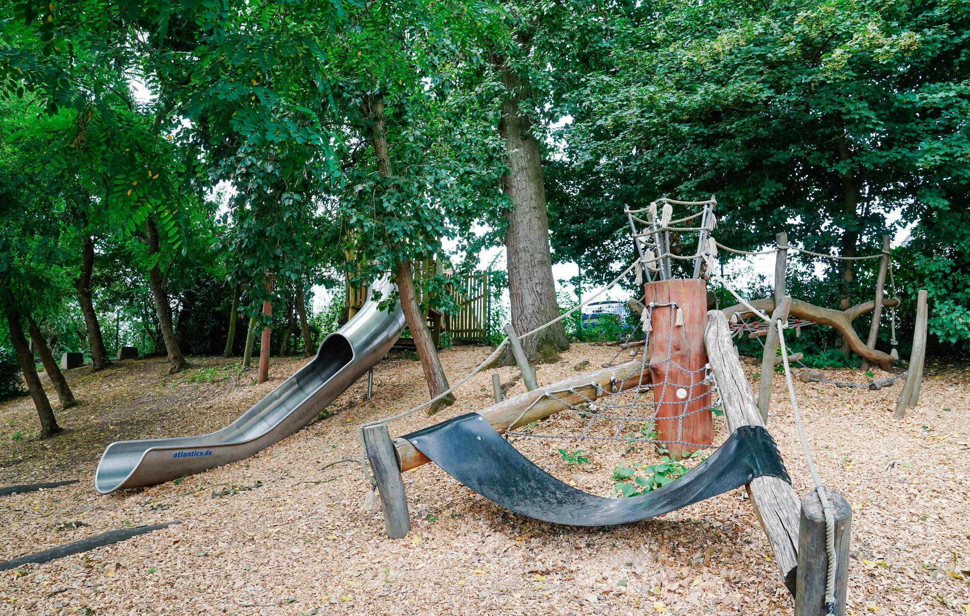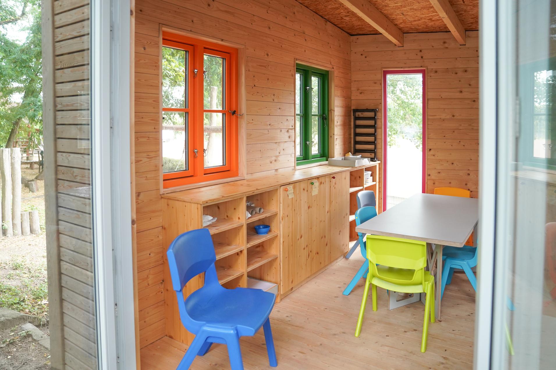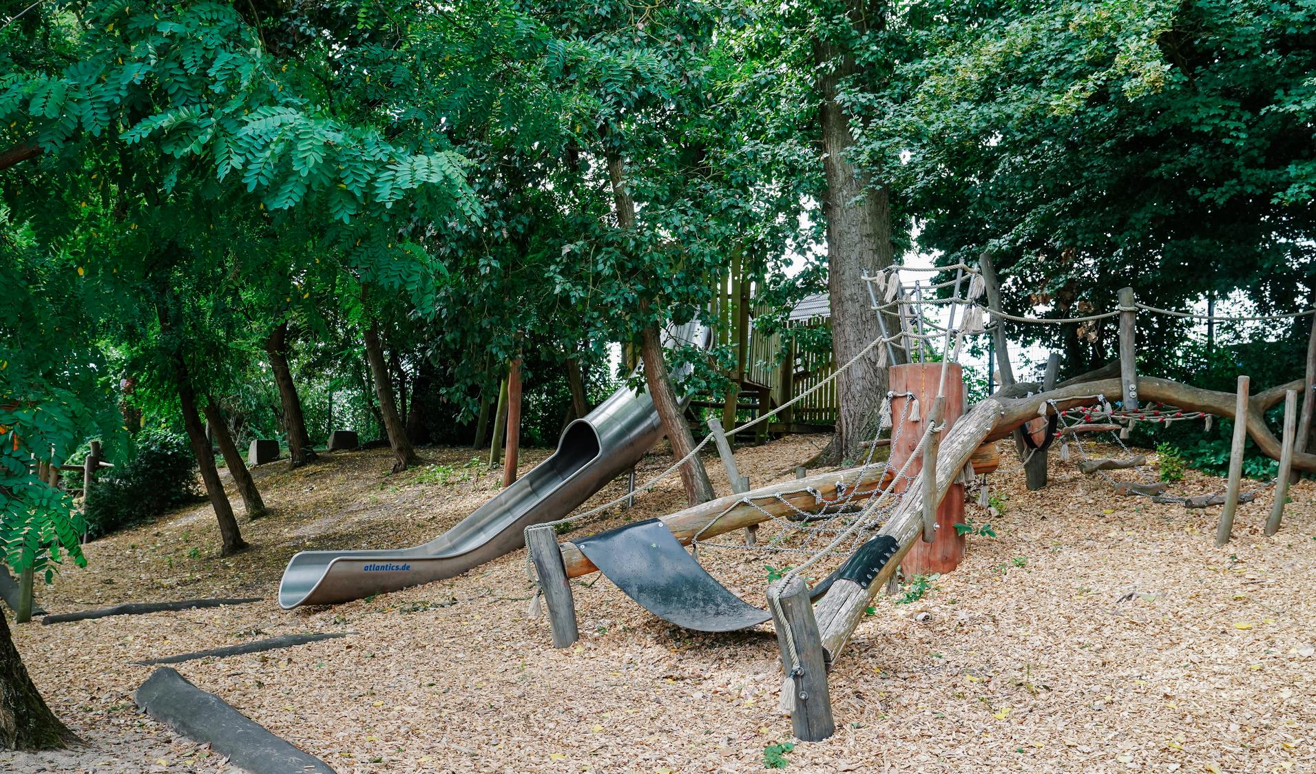 Durch eine spannende Rutsche, ein kleines Häuserdorf zum Verstecken und zuletzt die Dschungelhütte, vollausgestattet mit Mobiliar und genug Platz um die Natur selbst bei ungemütlichem Wetter zu betrachten.