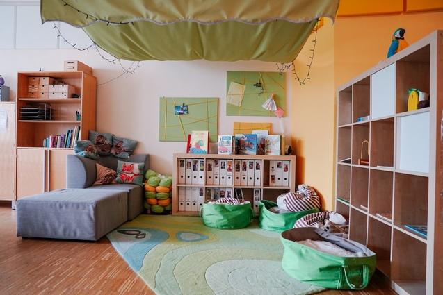 Der Schwerpunkt in dieser Gruppe bezieht sich auf den Rollenspielbereich, Tischspiele (z.B. Gesellschaftsspiele und Puzzle) sowie den Bereich Bauen und Konstruieren. Hinzu kommt noch der Schwerpunkt Ernährung. Hauswirtschaftliche Aktivitäten können durch die kindgerechte Küche durchgeführt werden.