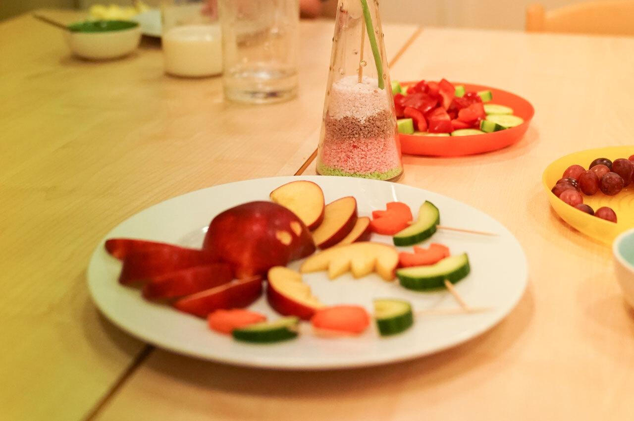 Jeden Tag wird den Kindern dazu frisches Obst und Gemüse gereicht und an manchen Tagen stellen die Kinder selbstgemachte Aufstriche her.